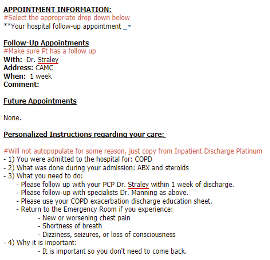 - The instructions can be done multiple ways and as long as you communicate to the patient what needs to be done, you can do this as you like. I utilize the Uptodate method to break it down into simple easy to digest steps. I then saved it as a dotphrase .jsdischargeinstructions